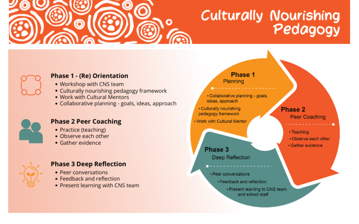 Teachers are guided to implement a range of changes in their teaching practice. Working alongside cultural mentors, teachers work together to plan and structure learning to suit the specific circumstances of each local school's context. This includes: